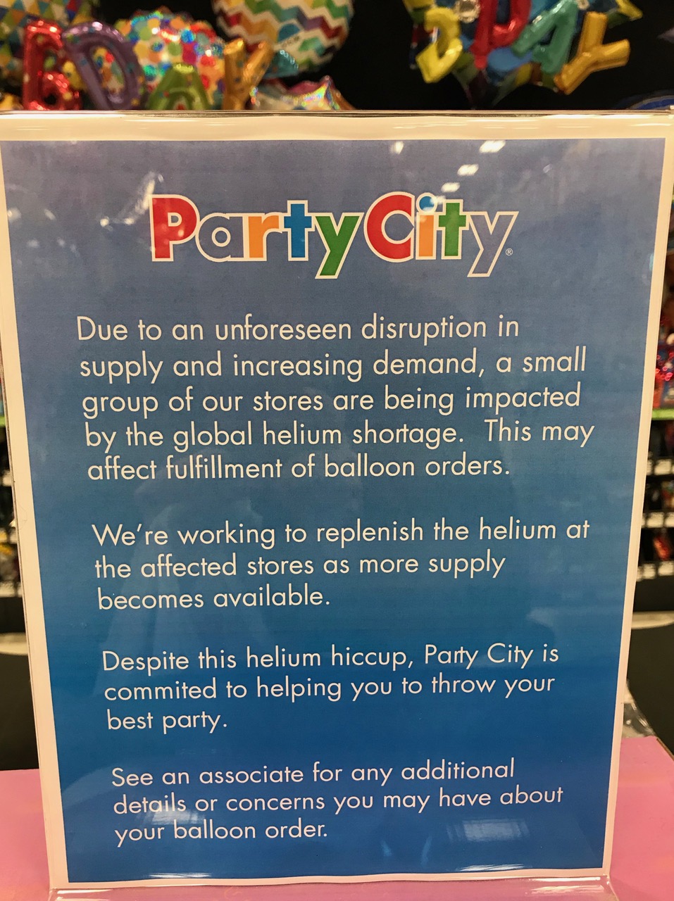 A helium shortage? And not just a local problem like a tank being hijacked or a trucking strike, but a GLOBAL shortage. Considering that a Party City employee misspelled “committed” I thought I’d fact check. (How reliable could a source be if a “t” was forgotten? What else was forgotten? Incorrect?)