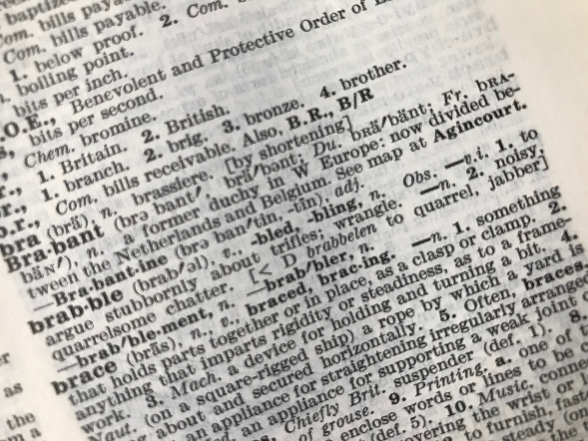 Brabble means to argue stubbornly about trifles. This verb leans towards onomatopoeia in that the abrasive sound is how I feel when I’m engaged in a brabblement.