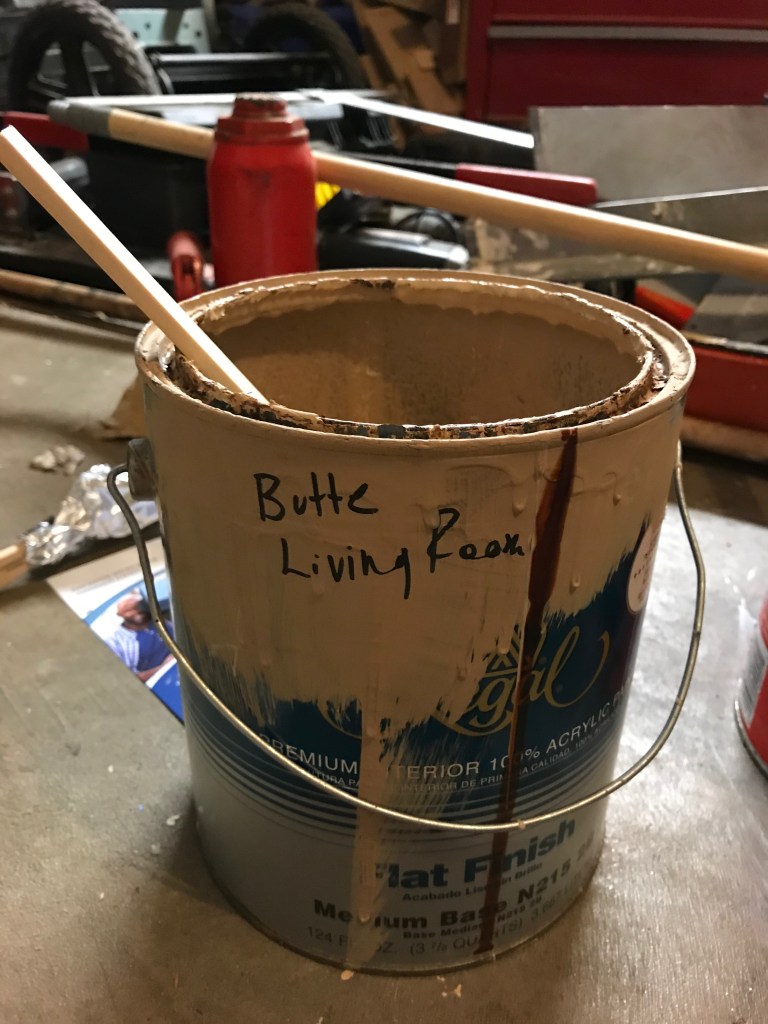 Needing to touch up the 15-year-old painted walls I surveyed the corresponding 15-year-old paint cans lining the garage wall.
