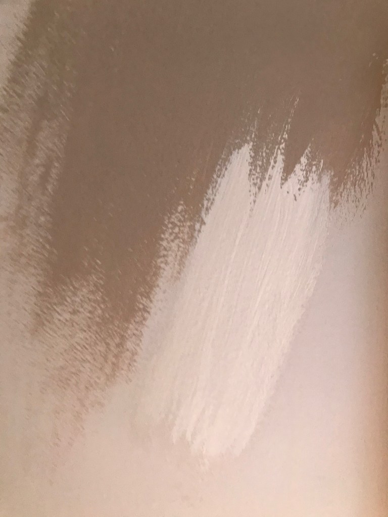 I poured a glob of white paint into the falsely labeled Butte paint can and mixed. Next I tested it on the dark wall patch. Then I waited for it to dry.