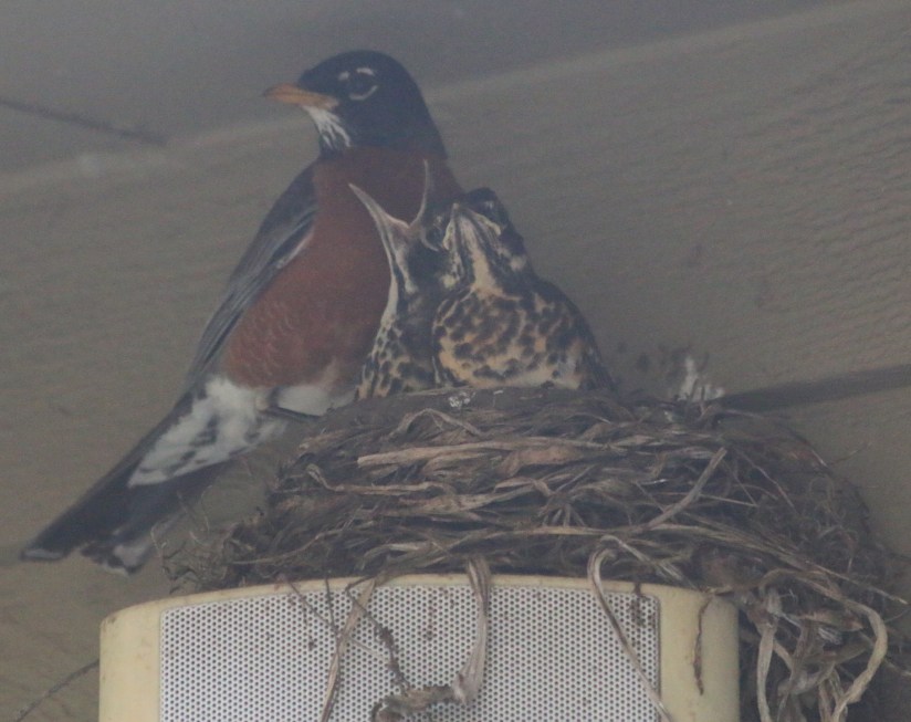 My “Rocking’ Robin’s” hummings and wonderings ceased when I heard demanding peeps coming from the nest. My pair of Turdus migratorius became parents. I don’t need scientific research to know that all rockin’, boppin’, and hoppin’ STOPPED until they raised their young resuming once they became empty nesters.