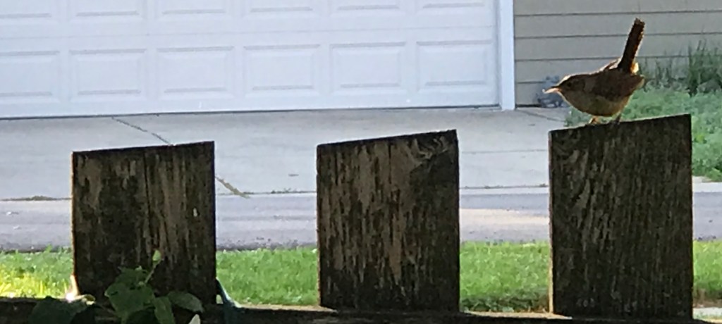 I looked at the wren on my fence and thought he’s flitting about.