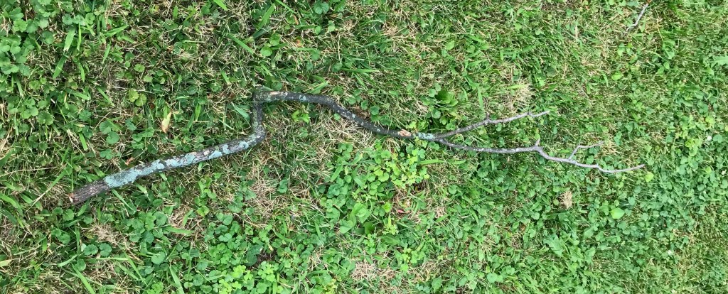I looked at the stick on the lawn and thought last night’s wind snapped off a branch from the tree.
