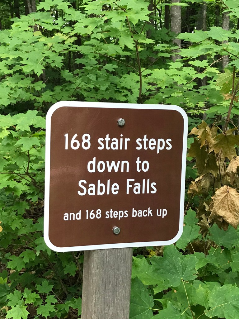 The Sable Falls sign reminded waterfall viewers of Newton’s third law: to every Action there is always an equal Reaction. The 168 stair descent becomes a 168 stair ascent after taking a selfie.