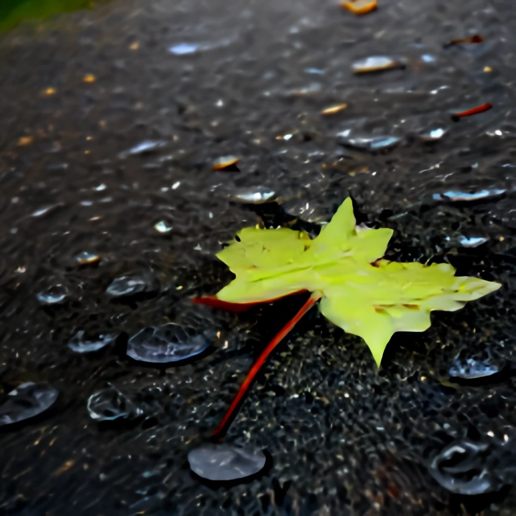 During recuperation from foot surgery, I managed only short, slow walks in my neighborhood. One misty day, I found a maple leaf on the path. Sprinkles bubbled on its back. The contrast of the delicate drops and the rough ground caught my eye. I snapped a shot. My DALL-E mini attempt of the photo fell short. I substituted” rocket ship” for “leaf” in the text for fun and DID chuckle.