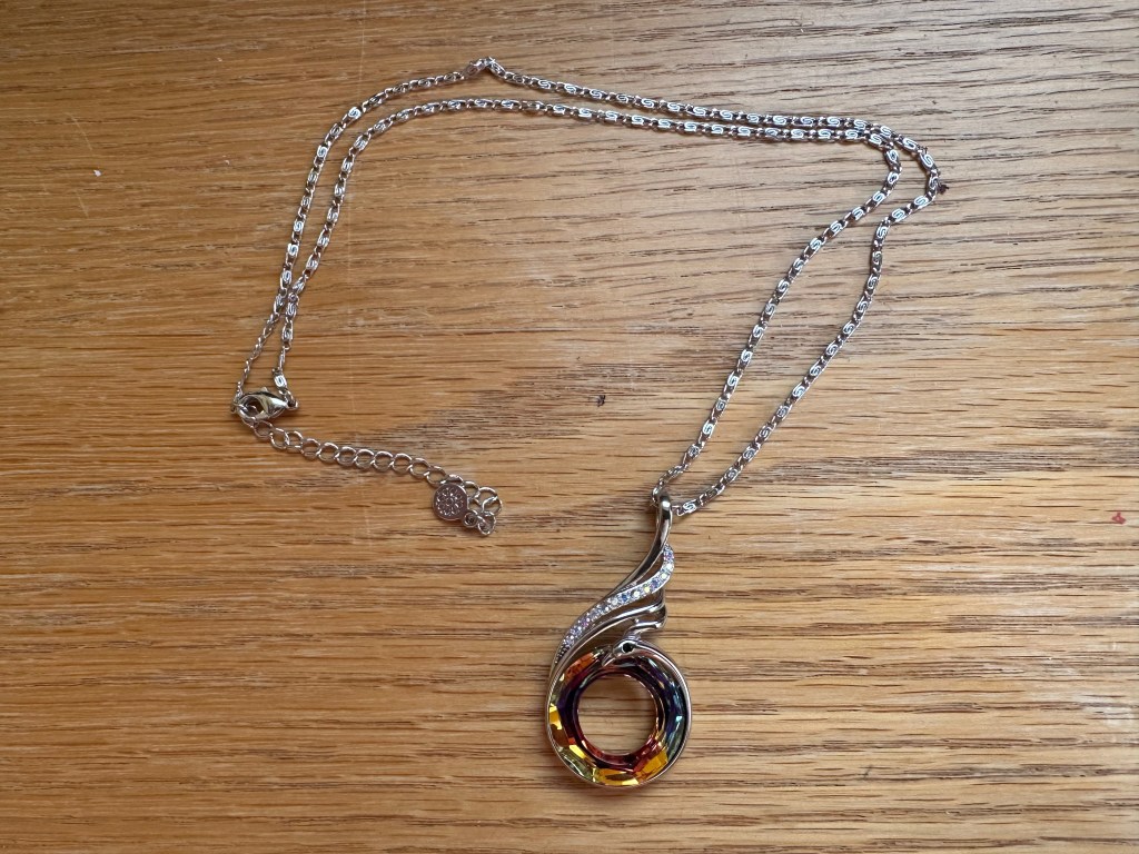 Enjoying the necklace’s whimsy and connection to a dear memory, I fastened the chain around my neck.
