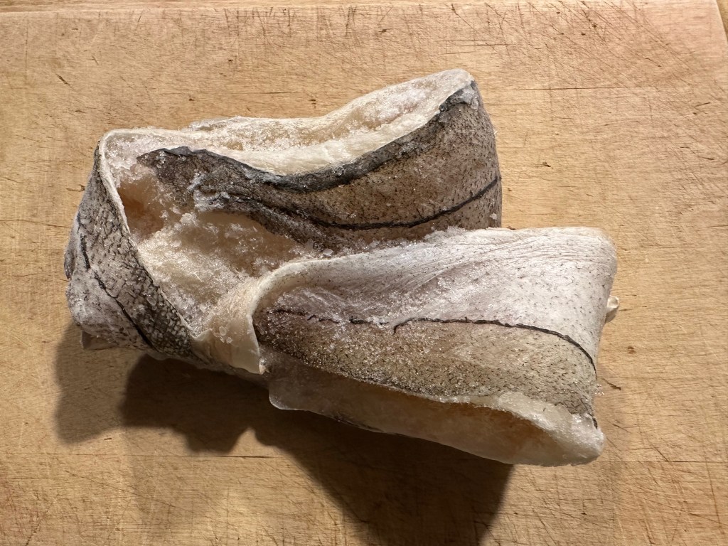 Now a matching haddock filet lay in a frozen curl encased in a freezer bag. I had asked Mike to choose a fish for the Hemmingway Trout recipe (which worked well with most fish). Fully cognizant of the prior disappointing haddock dinner, Mike chose the same fish for me to cook.