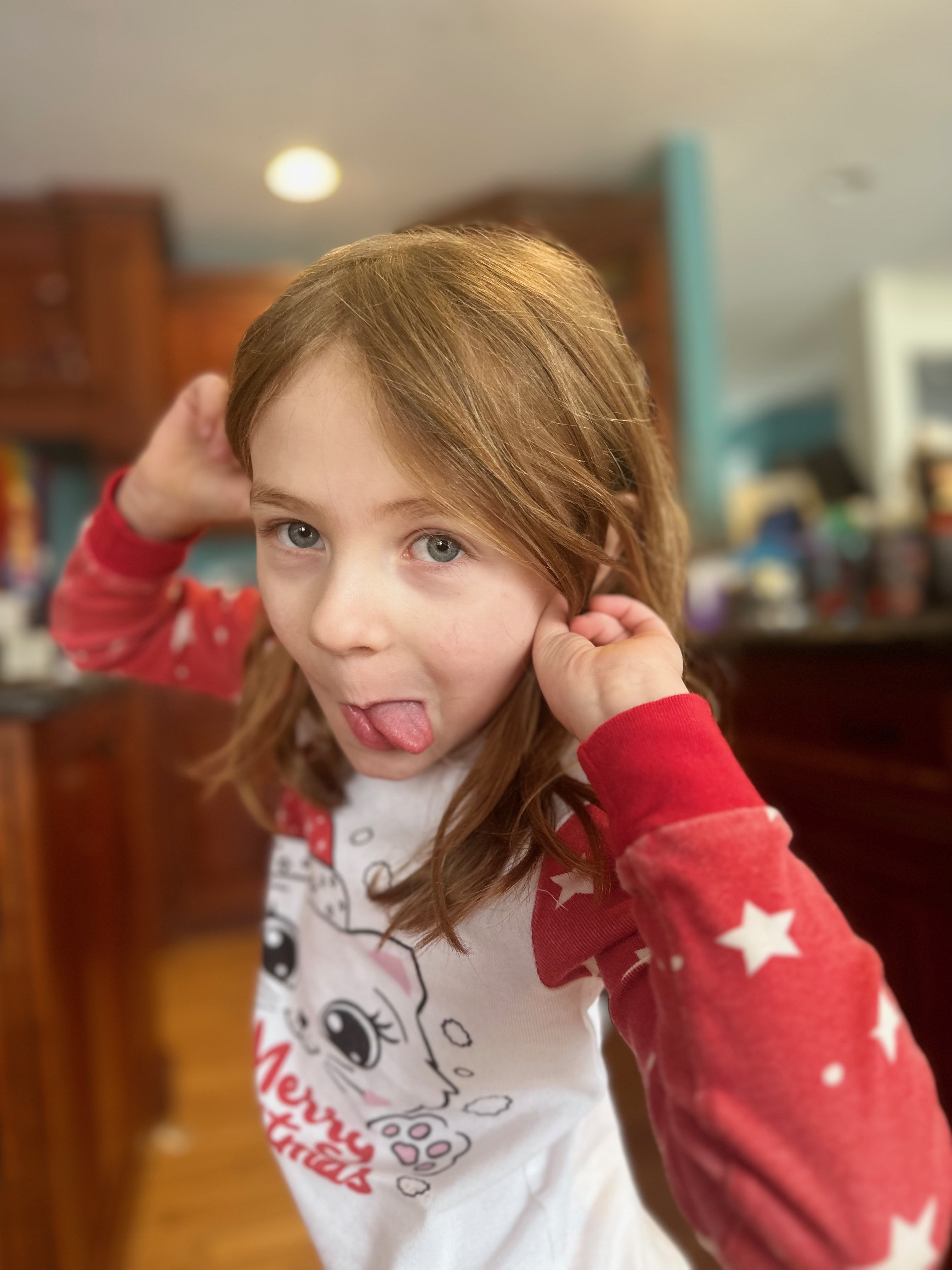 I didn’t need to read the thirty bazillion Googled articles to know that kids and funny faces go together like endorphins and dopamine. (Okay, I DID need to read about those neurochemicals.) Scroll through any grandma’s photo feed library to uncover a treasure of exaggerated frowns, pulled out ears, and twisted tongues depending upon the grandkid’s specialty. It’s part of their developing humor.