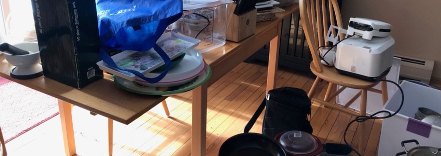 The George Foreman grill and waffle machine wedged between the two crock-pots while the gelato machine propped up the Valentine plates. The air fryer, vacuum food saver, and sous vide huddled on the floor. Crystal serving dishes stacked precariously. The spiralizer balanced atop the heap. All awaited the purge. My zeal for organization, recently fueled… Continue reading The Nonsense Chronicles: Small Appliance Small Talk